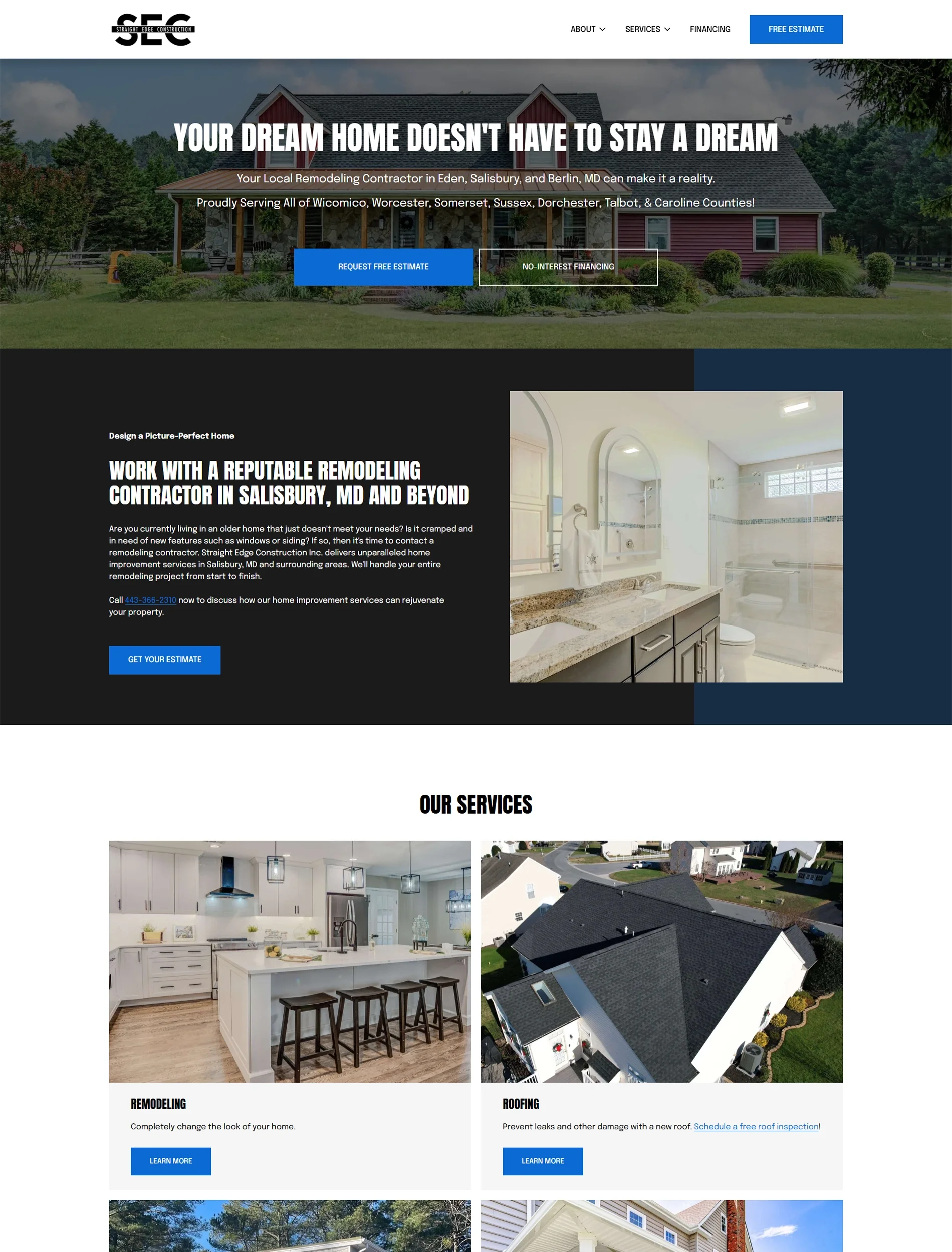 Homeowners who landed on the site had to work too hard to answer basic questions: What does SEC actually specialize in, how experienced is the team, and what happens next if they reach out.